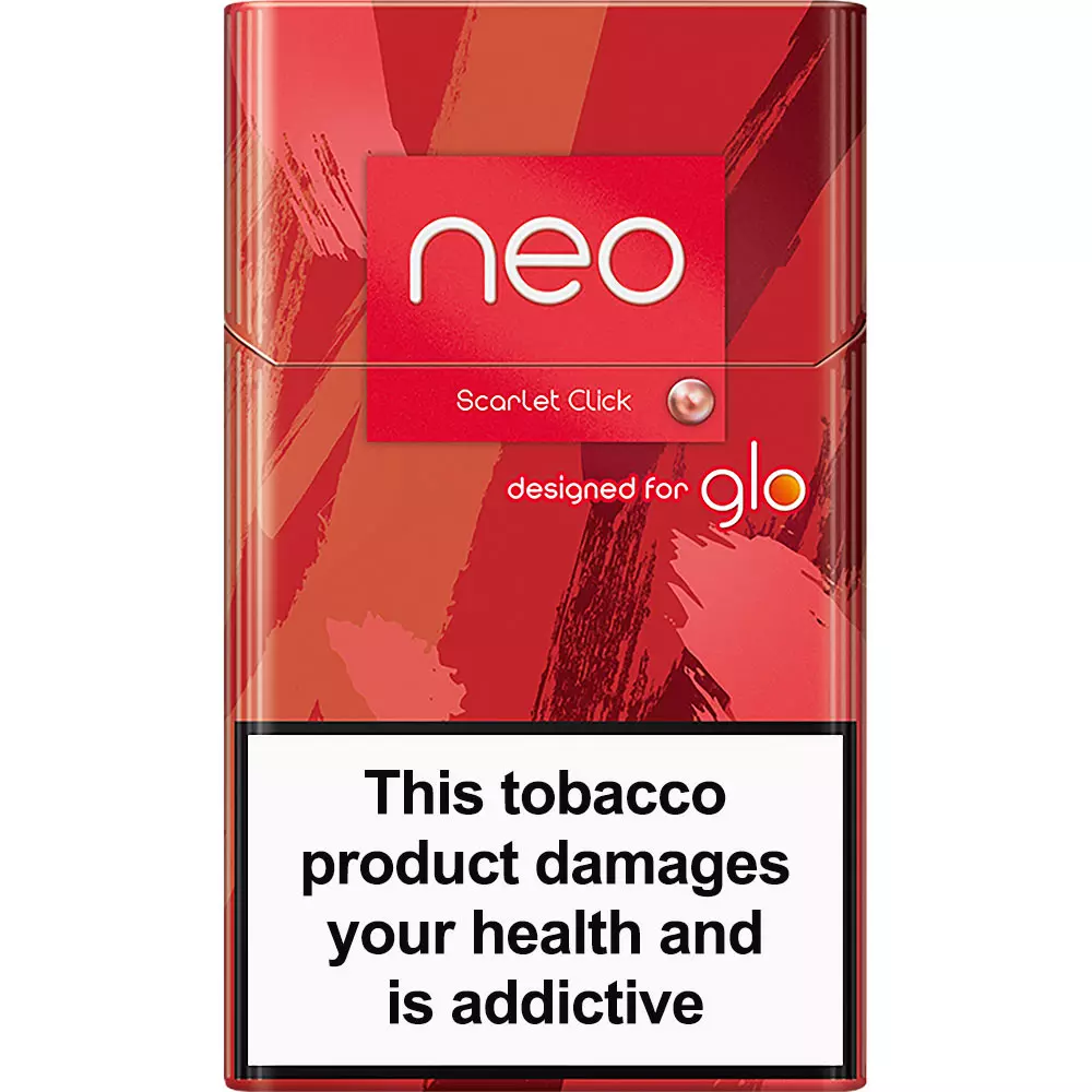 Neo Demi Scarlet Click is a mild tobacco flavor with creamy notes, infused with the juicy red berries at the click of a button. For use only with Glo Hyper line of devices.